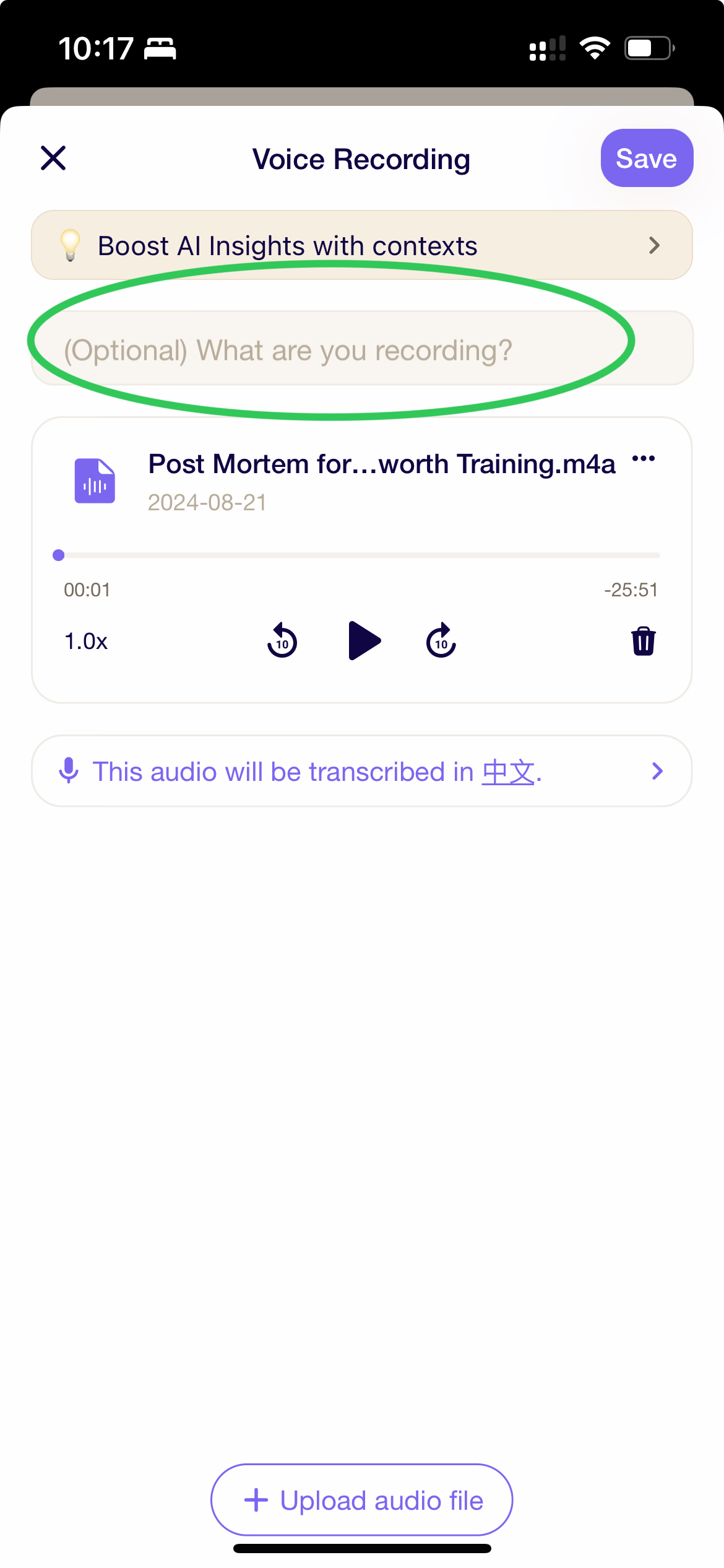Basically after I upload a recording, Me bot generates insights (I needed to keep reupload the recording for it to generate by the way because it keeps failing) but afterwards, I would like to re-edit the context though it doesnβt allow me to. It would be nice to have this and let it do the changes according to the context.