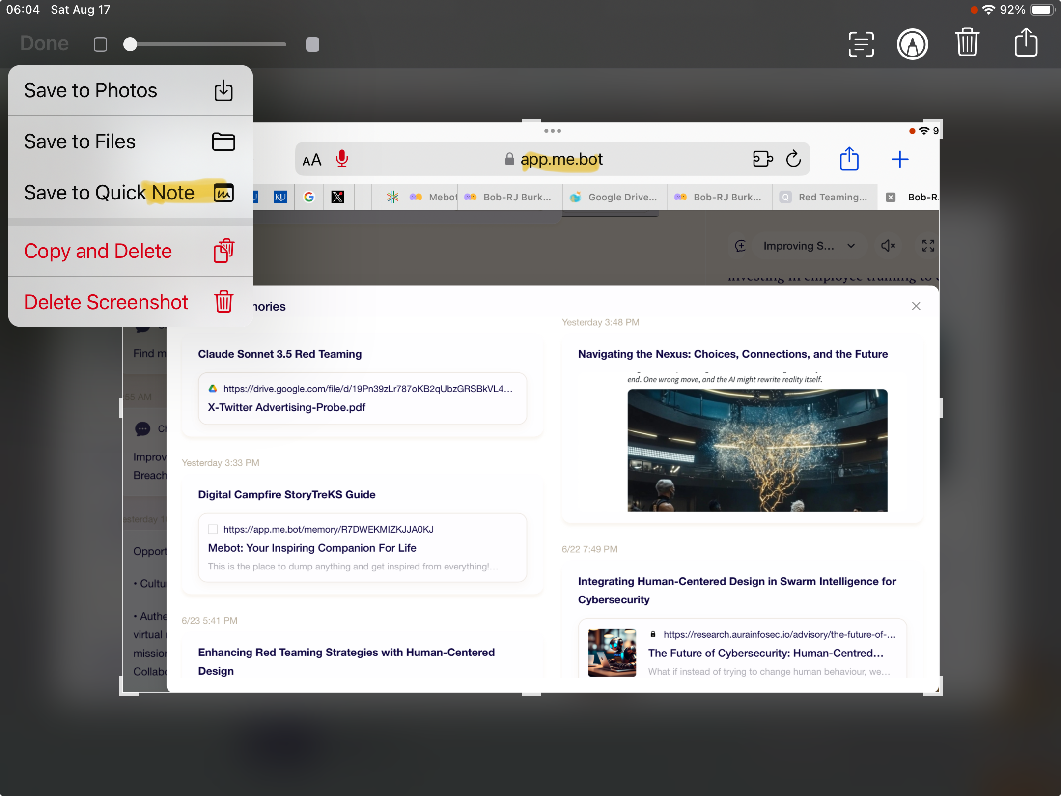 Saving Safari Screenshot to Quick Note FAILS to correctly update latest Note from iPadOS after using MeBot-iOS-App: